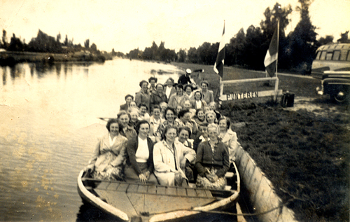 | Vrouwenvereniging "Laat Uw Licht Schijnen" een dagje naar Giethoorn. Vooraan tweede van links Klaske Veenstra. |